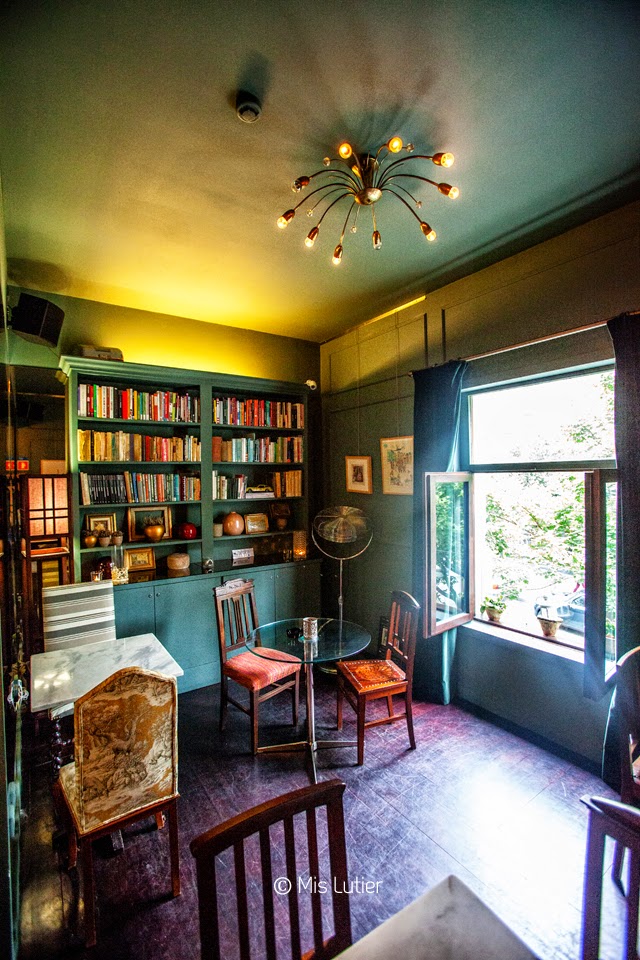 Photo 19 et 20. Livraria Da Baixa (Carmelitas 15, 4050-162). La librairie disparue de Fernando Machado est aujourd’hui une librairie-bar qui n’a pas perdu son apparence. Il est possible ici de prendre un café, un verre de vin, pendant que l’on lit un bon livre. Notre coin préfére est la terrasse avec ses chaises en fer forgé. Et cette fantastique vitrine qui laisse voir beaux objets vintage de récupérations et de plus à la vente.