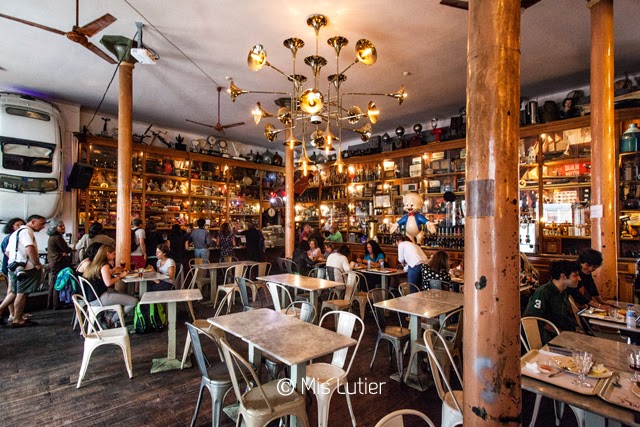 Fotos 12 a 17. Galería de Paris (Rua da Galeria de Paris 56, 4050). Decoración industrial y vintage para el bar-restaurante-pub por excelencia de esta calle. Es imposible saber todo lo que cuelgan y guardan sus estanterías y paredes. Desde colecciones de básculas o juguetes, a un inodoro o un Fiat Cinquecento! (uno de verdad!). Tiene un menú del día de lunes a viernes sencillo y muy asequible. Y nunca faltan los flyers con información cultural y de ocio de la ciudad.