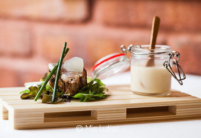 Photo 20. Restaurant O Fieital (Juan Díaz Porlier, 22). Tataki de thon frais accompagné de crême de poireau et granita au citron.