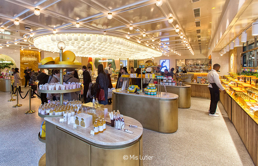 Las fragancias y tratamientos de L’Occitane se unen a los chocolates, pasteles y exquisitos macaron de Pierre Hermé en plena avenida de los Campos Elíseos.