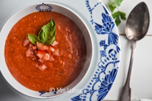(5) Retirar la hoja de laurel y triturar en la propia olla todos los ingredientes. Si os gusta menos espeso podéis añadir un poco de agua.