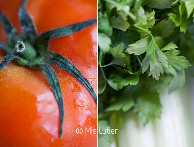 (1) Cortar en rodajas la zanahoria, el apio y las cebollas. Picar el perejil, las hojas de albahaca y el tomillo.
