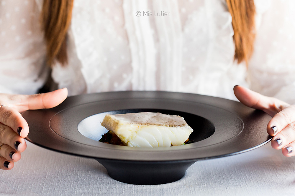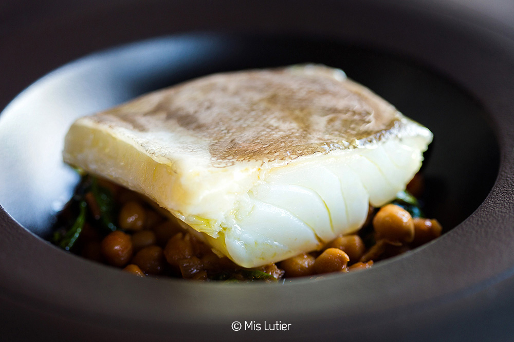 Bacalao confitado con guiso de garbanzos y espinacas