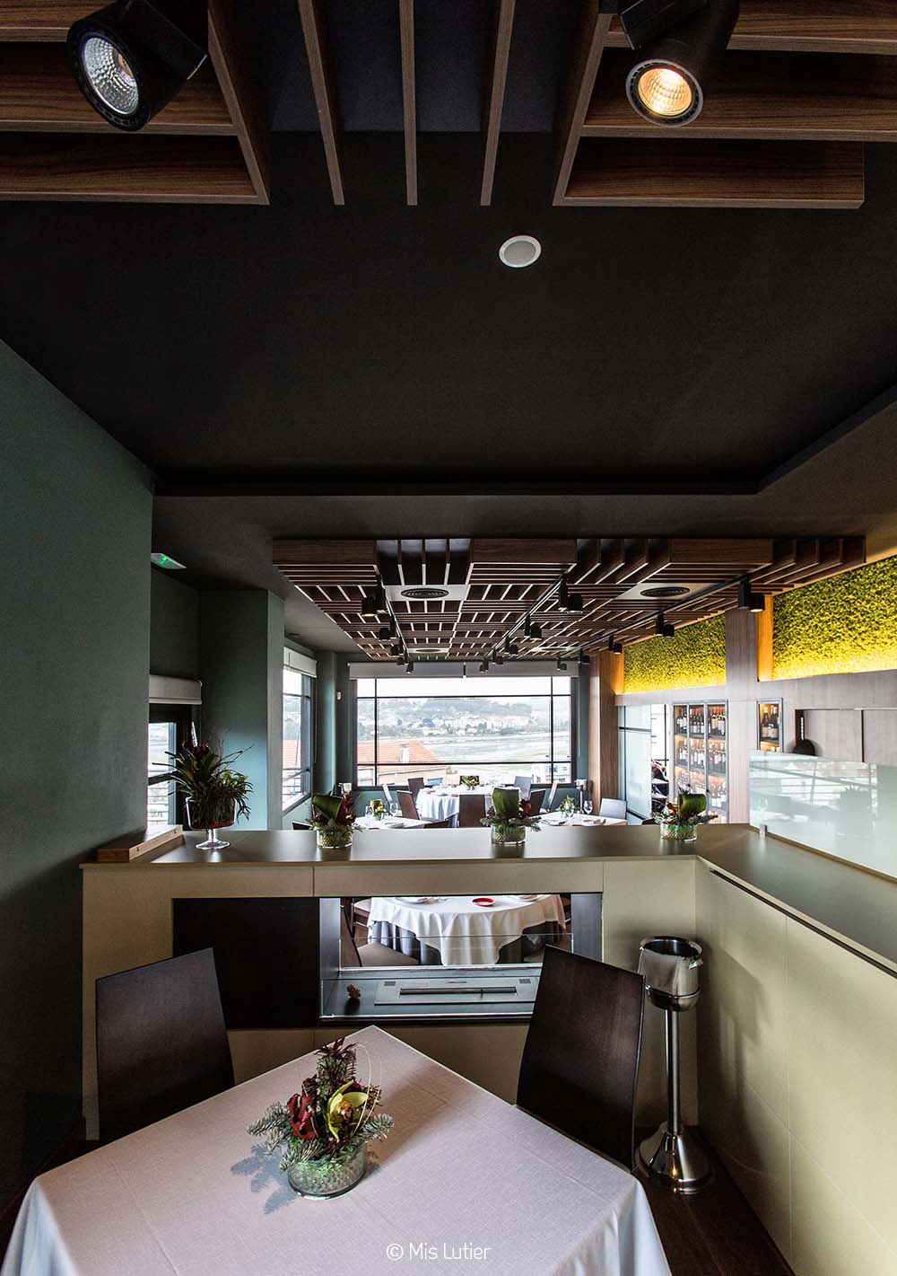 Son pari: un restaurant simple, élégant, chaleureux, ayant des vues sur la ria de Burgo et qui compte aussi sur plusieurs espaces ou prédominent les couleurs du territoire galicien, les marrons du bois et de la terre, le vert des feuilles et de la forêt.