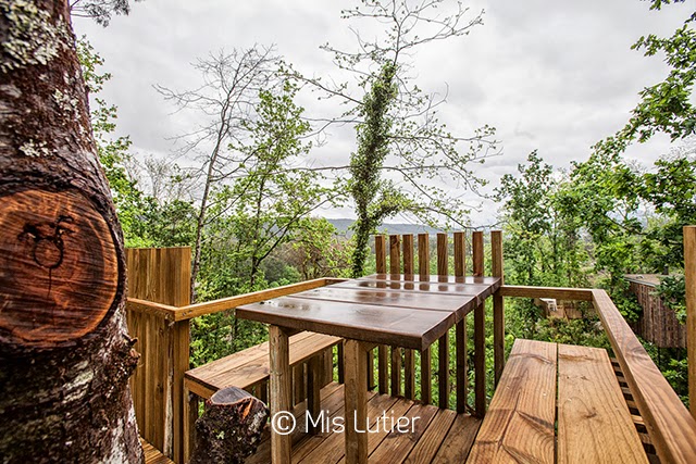 Ces cabanes ne manquent de rien. Elles sont équipées au maximum: air conditionné / chauffage, musique, wifi gratuit, televisión, un bon sèche-cheveux (et Lutier sait bien combien j’apprécie ça :D), une cuisine discrète avec tout le nécessaire, un magnifique poêle à bois ainsi qu’un énorme jacuzzi, à l’intérieur ou à l’extérieur en fonction de la cabane choisie, et dans laquelle les sels de bain et les bougies ne manquent pas. Vous pourrez aussi profitez sur commande de plats pré-cuisinés, des conserves, du vin et du service de petit déjeuner servi dans un joli panier en osier. Il y a aussi une tyrolienne et un pont tibétain pour les plus aventuriers! Difficile de résister.