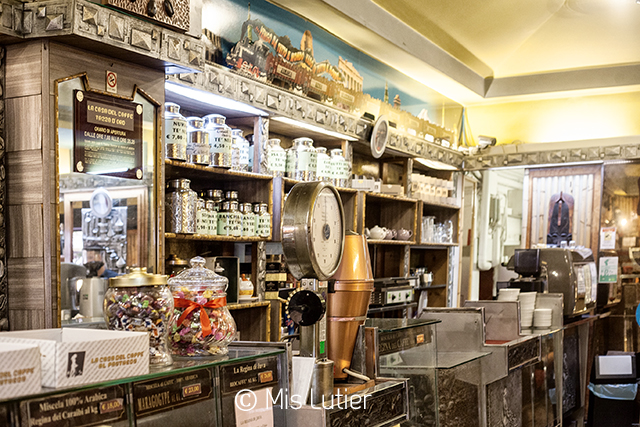 Photos 11 à 13. Caffè Sant’Eustachio (Piazza di Sant’Eustachio, 82 – Rome). Original de 1938, ce petit établissement fut un ancien torrefacteur qui continue aujourd’hui à être l’un des préférés des romains.