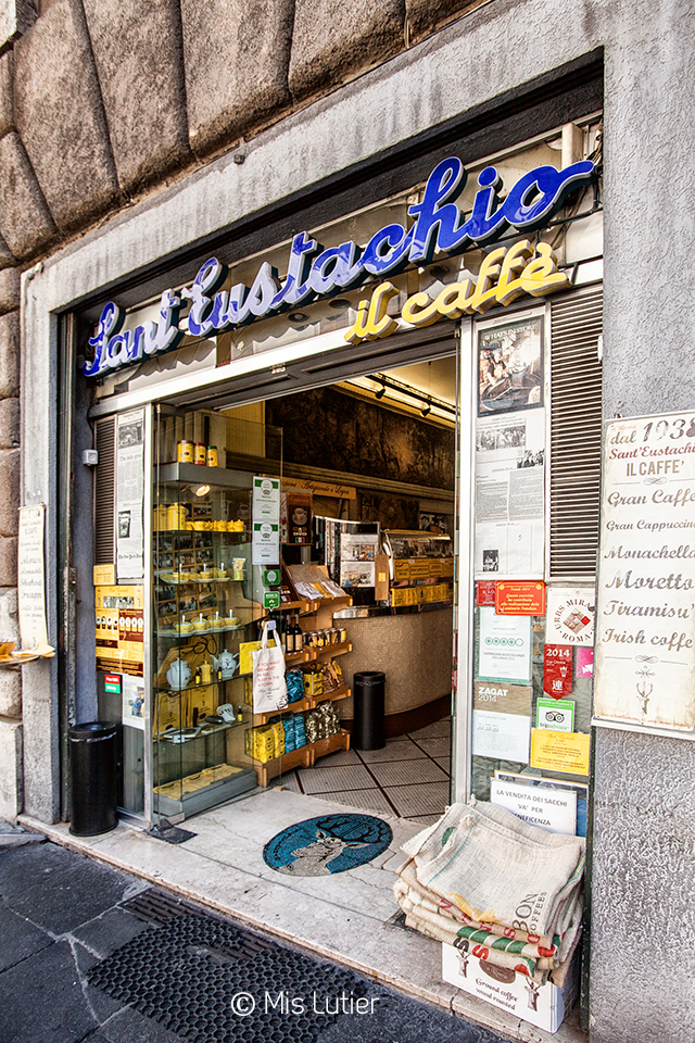 Fotos 11 a 13. Caffè Sant’Eustachio (Piazza di Sant’Eustachio, 82 – Roma). Original de 1938, este pequeño establecimiento fue un antiguo tostadero que hoy en día continúa siendo uno de los favoritos de los romanos.