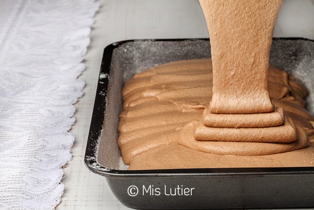 (3) Dans un saladier, bien mélanger le beurre, la farine, le sucre en poudre, la levure, les oeufs, le yaourt, l’essence de vanille, le cacao en poudre et la moitié du café, juqu’à obtener une pâte homogène.