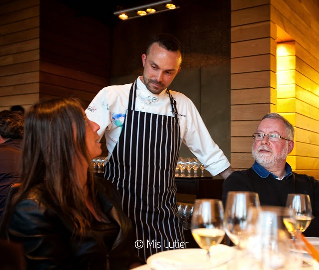 Quand nous avons su qu’il y aurait une présentation d’un de ces nouveaux dîners de «maridaje» (jeux de combinaisonx entre les plats et les vins), on a tout de suite pensé que ce serait là l’occasion parfaite. C’était en effet très tentant: l’établissement, le restaurant Alborada, qui a déjà une étoile Michelin; le «maridaje», pris en charge par l’oenologue Xose Lois Sebio, proposant des vins authentiques et peu conventionnels, des vins de grande personnalité et d’élaborations exclusives; enfin le menu … surprise !! Nous ne savions rien de ce dernier jusqu’au moment de prendre place à table. Cela a permis que l’expérience soit pour nous d’autant plus captivante.