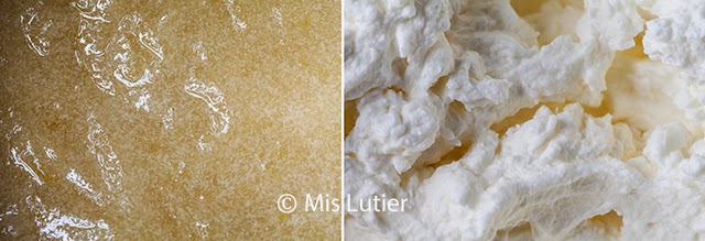 (6) Mettre 2 feuilles de gélatine quelques minutes dans de l’eau froide. Une fois que la compote est tiède, égoutter les feuilles de gélatine et les incorporer en mélangeant pour qu’elles s’intègrent bien. Laisser refroidir complètement.