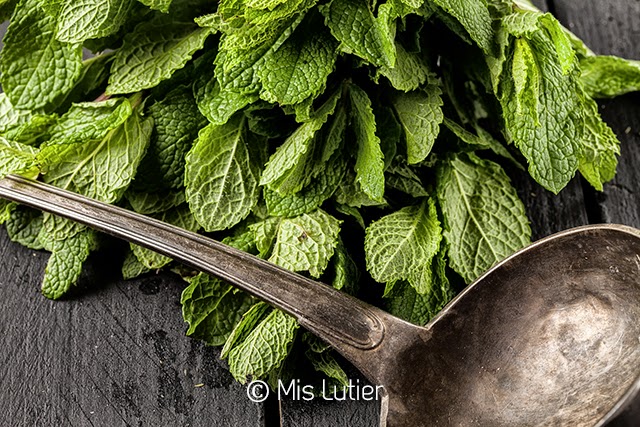 (4) Preparar la salsa batiendo el yogur con el ajo y unas hojas de menta muy picados, la cucharada de zumo de limón, el azúcar, una pizca de sal y pimienta.