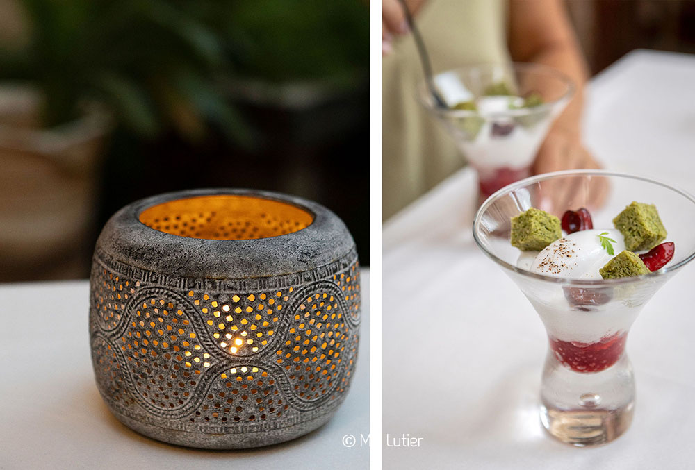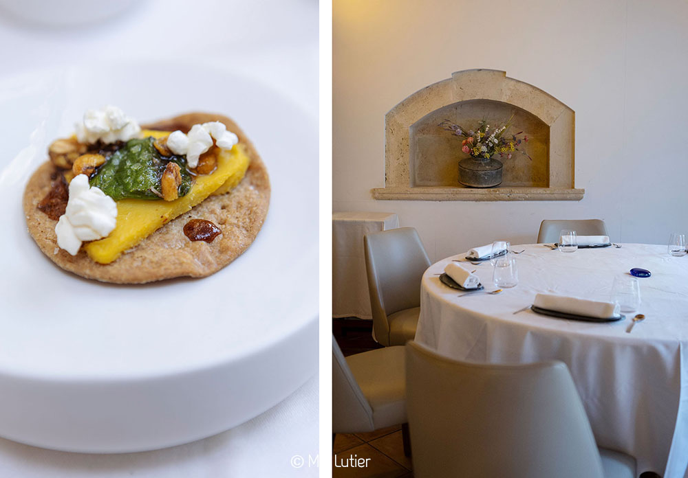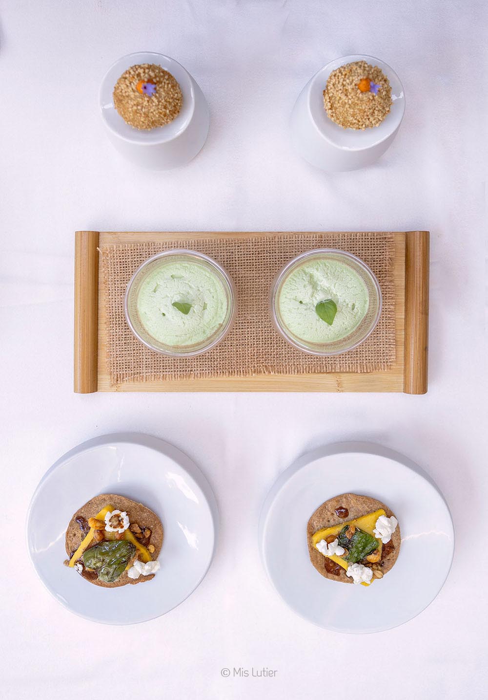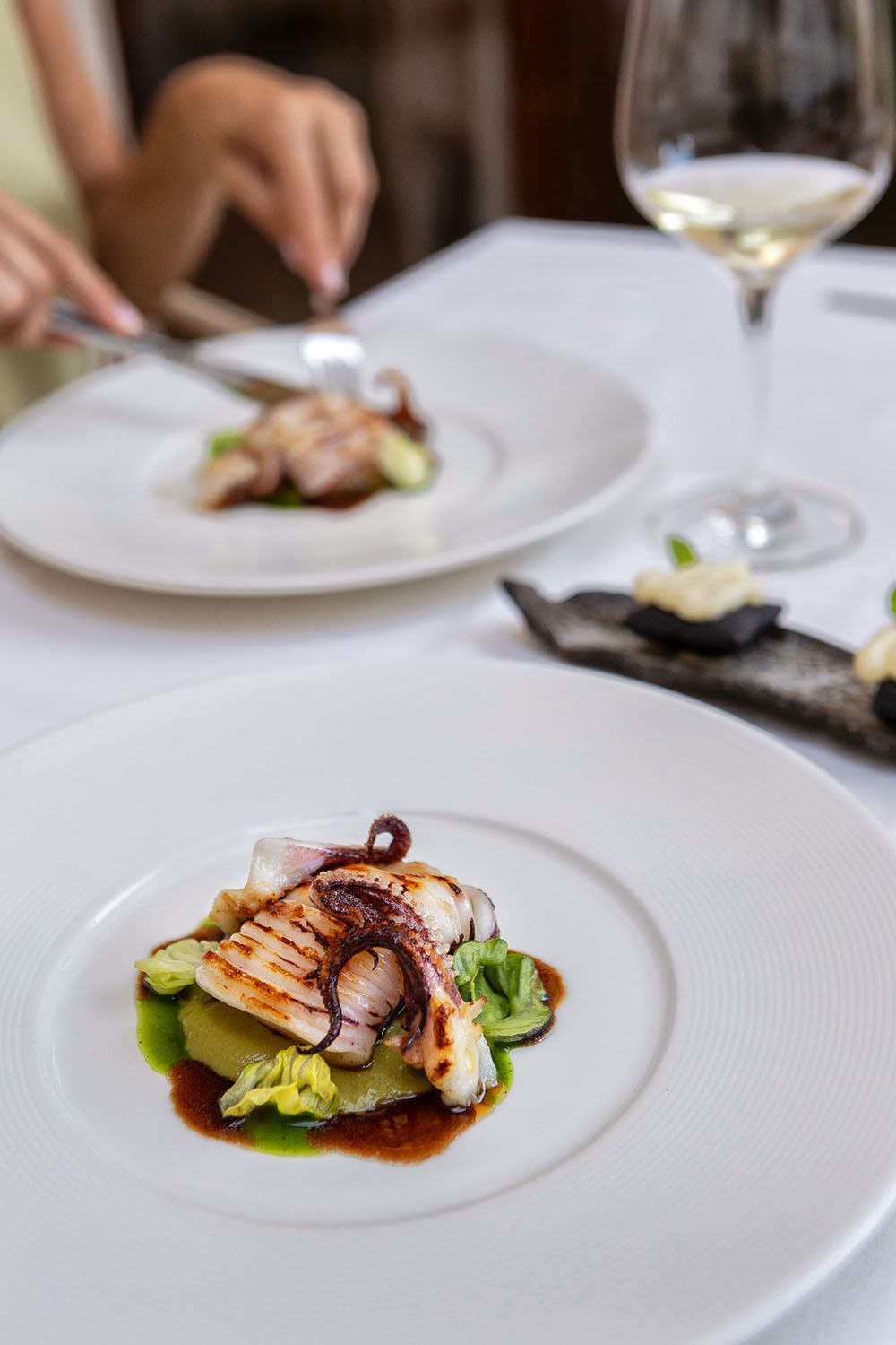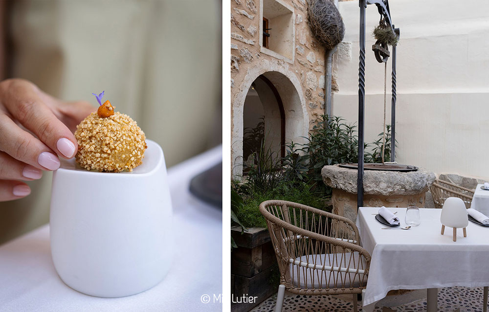 La cocina de Caterina Pieras —galardonada como mejor chef de Balears en 2018— combina elegancia, técnica y sensibilidad. Su propuesta se presenta en forma de dos menús que cambian con las estaciones y reflejan su respeto por el producto local, la tradición mallorquina y la creatividad contemporánea. Cada pase es un juego sutil de sabores y texturas, con una ejecución impecable y una presentación cuidada al detalle.