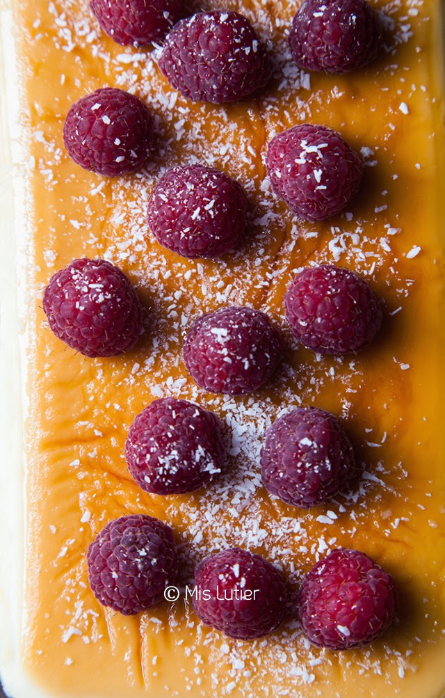 (5) Servir acompañado de frambuesas y espolvoreado de coco rallado.