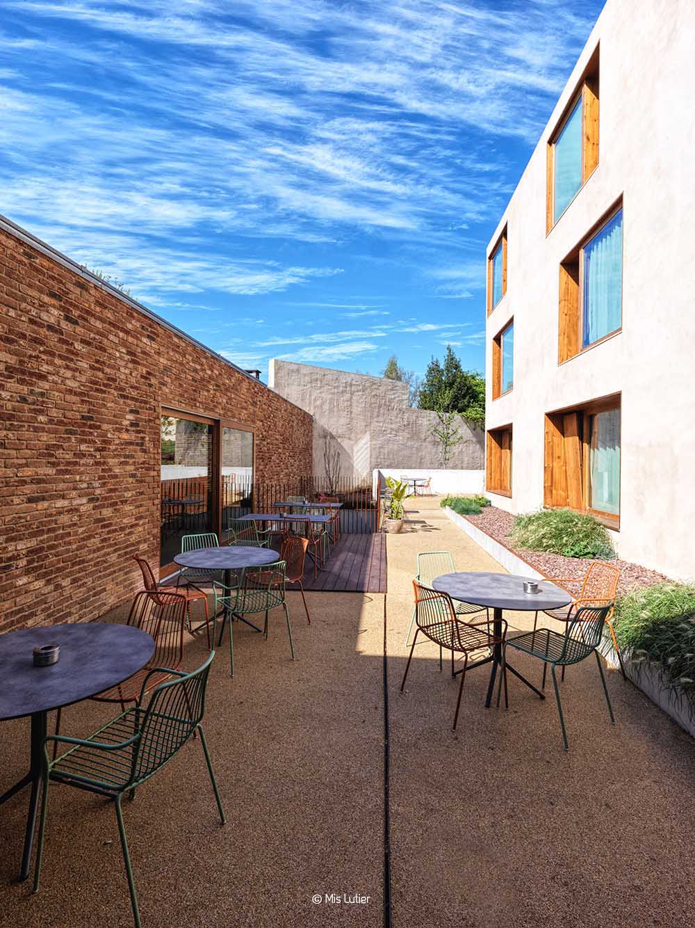 Un espacio multicultural, donde a todos los servicios propios de un buen hotel se suma el componente musical. Hasta 62 habitaciones a elegir entre dobles, apartamentos duplex o suites, algunos con terraza o cocina. Con espacios comunes para el relax tales como jardín, piscina exterior, bar con coctelería, restaurante con servicio de snacks, menú ejecutivo o a la carta; o incluso sala de conciertos, sala de ensayos o musicoteca, ésta última con una amplia colección de vinilos y libros sobre música.