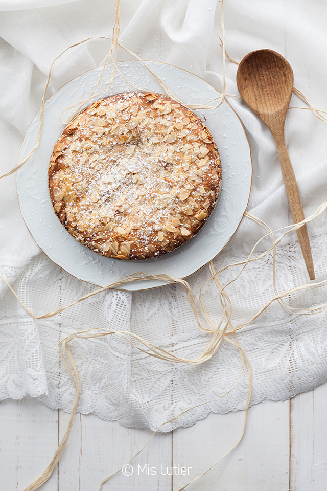 (5) Cuire au four pendant 50 minutes à 180ºC, chaleur en bas, jusqu’à ce que le gâteau soit doré. Introduire alors un cure dent en son centre et vérifier qu’il en sort propre. Retirer du four, laisser refroidir et démouler. Servir en saupoudrant de sucre glace.