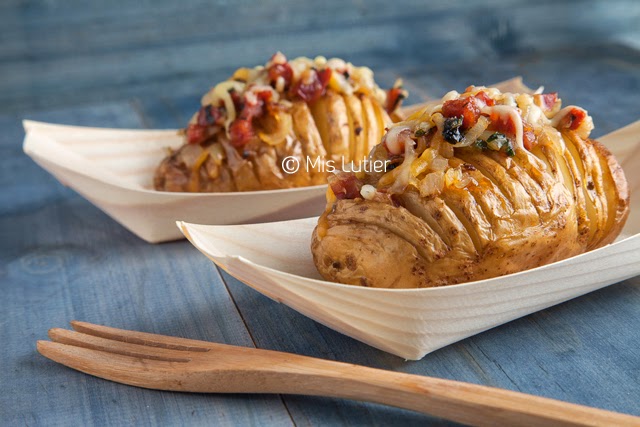 Un entrante fabuloso, super apetecible y de lo más resultón!!! Las patatas Hasselback quedan fabulosas rellenes de lo que las rellenes.