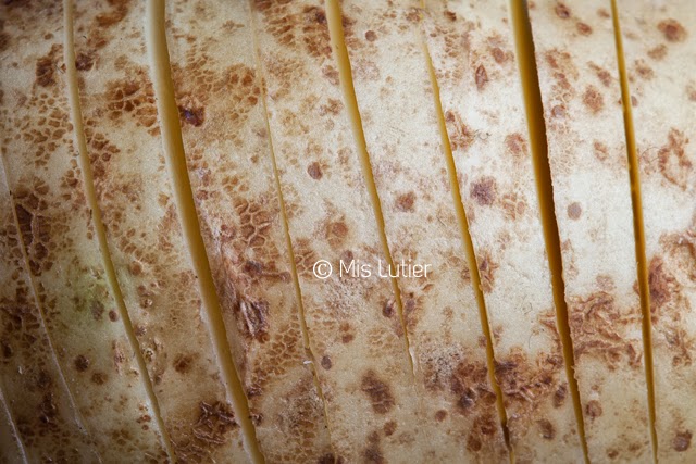 (2) Con un cuchillo cortarlas varias veces transversalmente pero sin llegar a la base, es decir sin cortarlas totalmente.