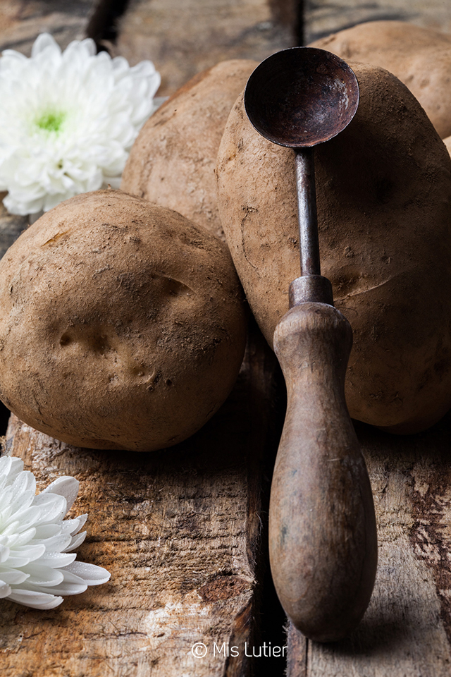 (3) Placer les pommes de terre entières sur une plaque de cuisson (nous avons utilisé un moule en silicone, le cuit pomme de terre de Pot’asty que Jacqueline, la maman de Lutier, nous a offert). Introduire au four pendant 60 minutes à 200ºC, jusqu’à ce que les pommes de terre soient parfaitement cuites.
