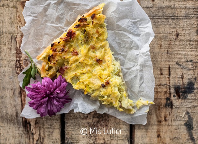 (5) Repartir la mezcla sobre la masa brisa y hornear unos 30 minutos, hasta que se dore. Servir acompañada de una buena copa de vino. Nosotros hoy con un fantástico afrutado vino blanco, cortesía de Marqués de Vizhoja.