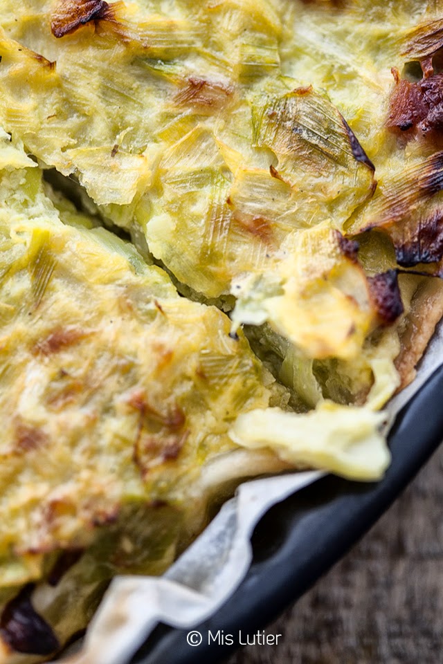 (5) Répartir le mélange sur la pâte brisée et cuire au four pendant 30 minutes, jusqu’à ce que la tarte soit bien dorée. Servir accompagnée d’un bon verre de vin. Nous avons choisi pour l’occasion un fantastique vin blanc Marqués de Vizhoja.