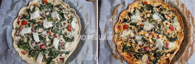 (11) Étendre le mélange sur la pâte préalablement cuite. Et répartir enfin quelques morceaux de fromage de Arzúa. Introduire au four pendant 30 minutes approx à 170ºC .
