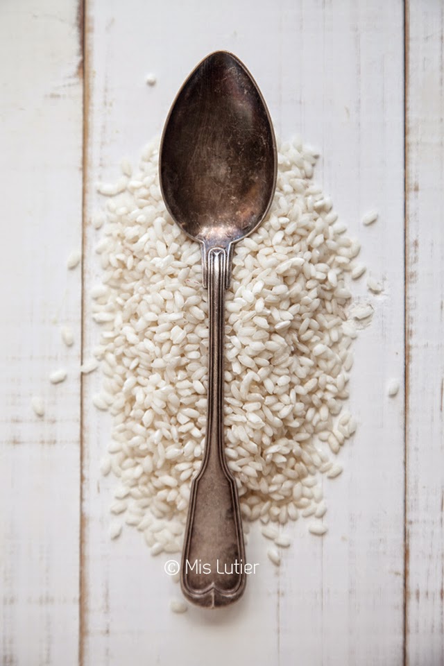 (6) Verter un poco del caldo en la sartén y remover hasta que el líquido sea absorbido por el arroz. Poco a poco añadir el resto del caldo, un poco de cada vez, removiendo hasta que es absorbido por el arroz antes de verter la siguiente cantidad. Hacerlo durante unos 15-20 minutos, hasta que el arroz esté cocido y cremoso. (Es posible que no sea necesario añadir todo el caldo).