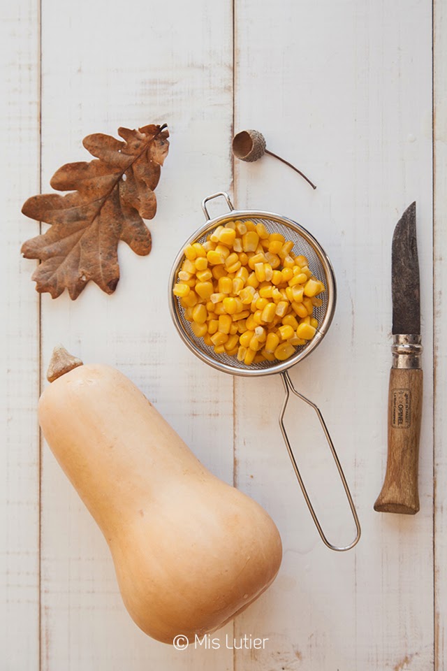 (7) Recuperar la calabaza e incorporarla, junto con los guisantes y el maíz bien escurrido. Remover mezclándolos bien y sazonar al gusto.
